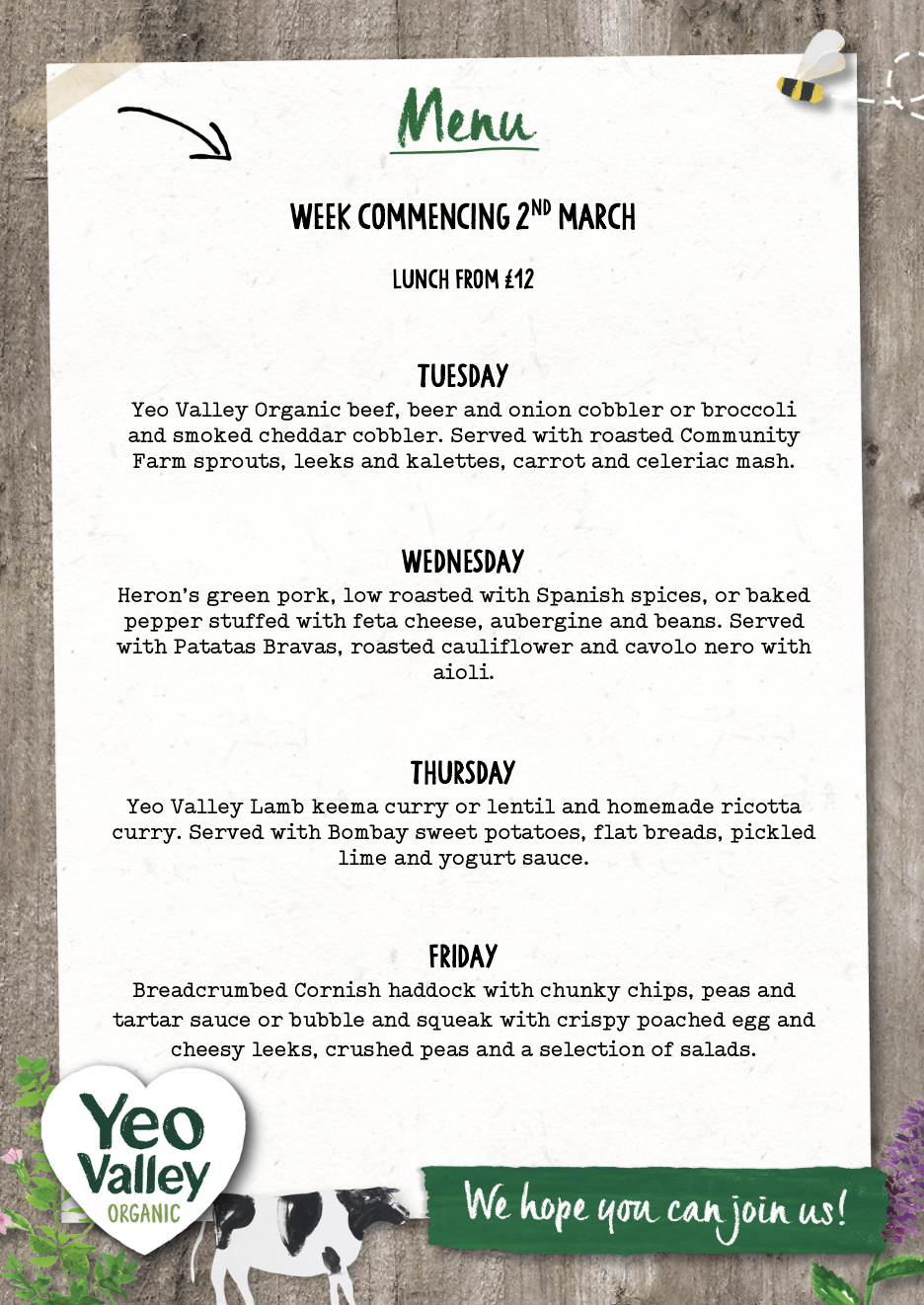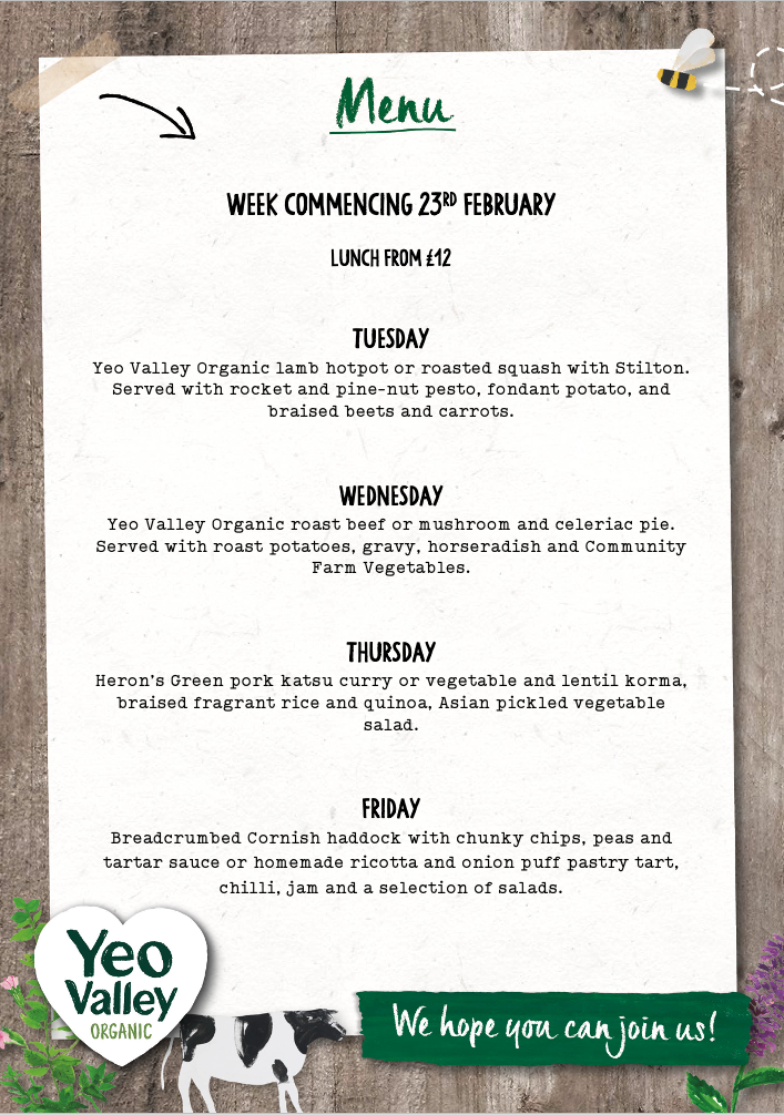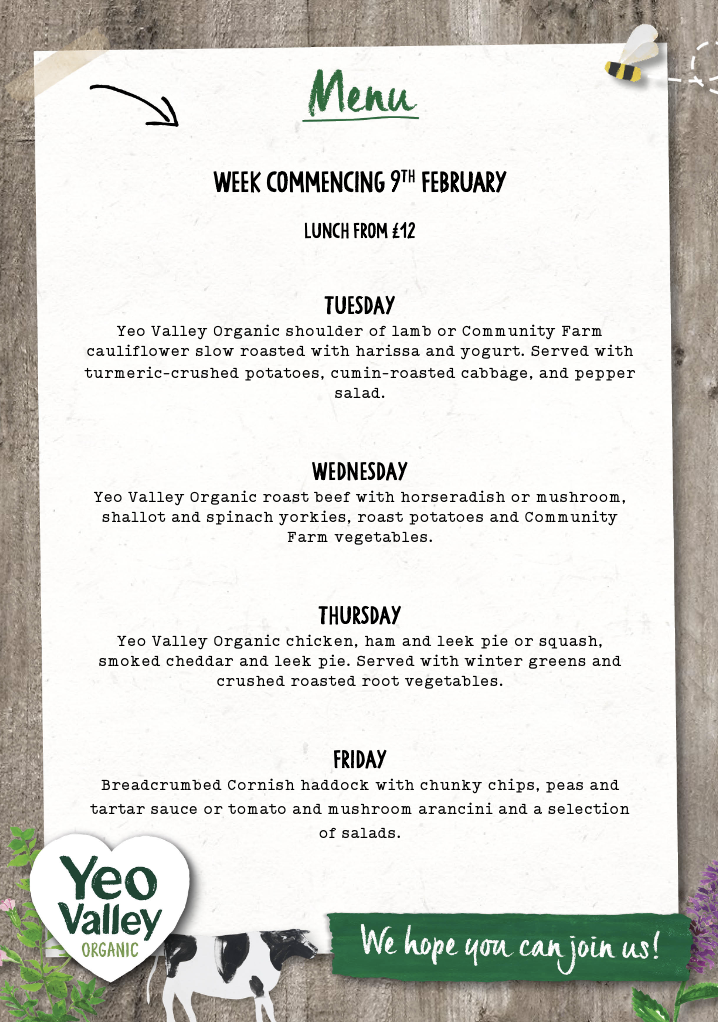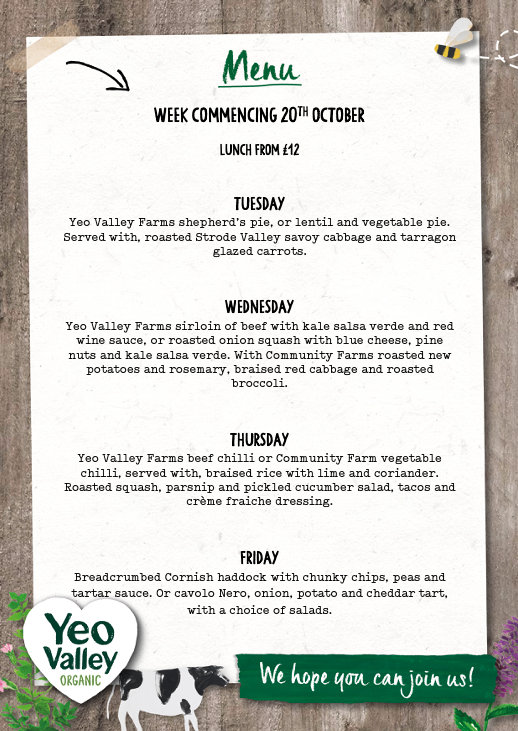 You know the old saying, "An army marches on its stomach"? We've taken that to heart here at the Yeo Valley Organic HQ Staff Canteen. We are fortunate to enjoy our meals here every day, and now you can too! Oh, and there will always be a veggie option! But don't take our word for it, read kind reviews from those who have visited.